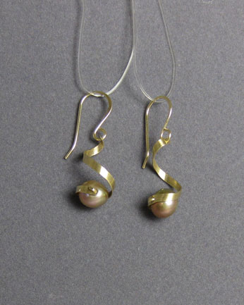 In these simple, elegant earrings, a small natural-color cultured freshwater pearl is wrapped in an 18K-gold metal spiral.