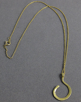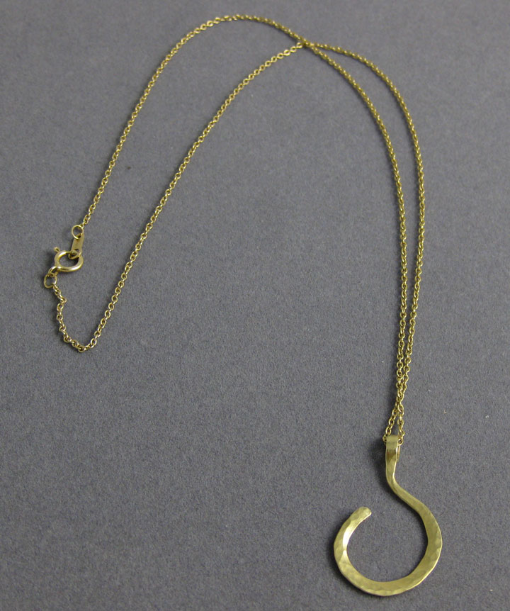 This simple, curved pendant is fashioned from hammered, brushed 18K gold and hangs from an 18K gold chain.