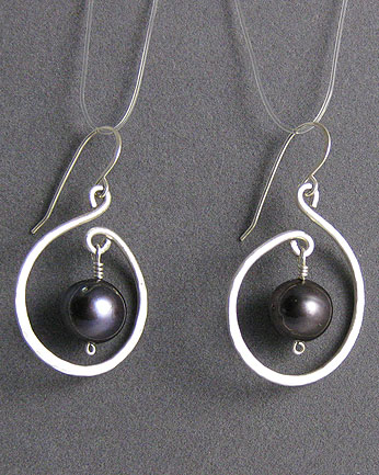 These cultured freshwater pearls are suspended within a heavy silver ring. These earrings are similar to item #2270.