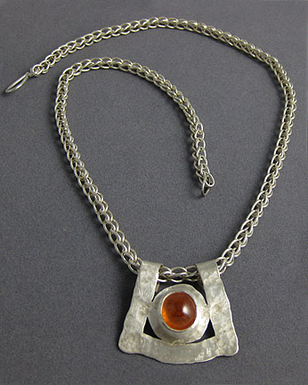This pendant shows off a bright orange spessartite garnet cabochon in a hammered Argentium sterling silver setting. The chain is a handmade single loop-in-loop style.