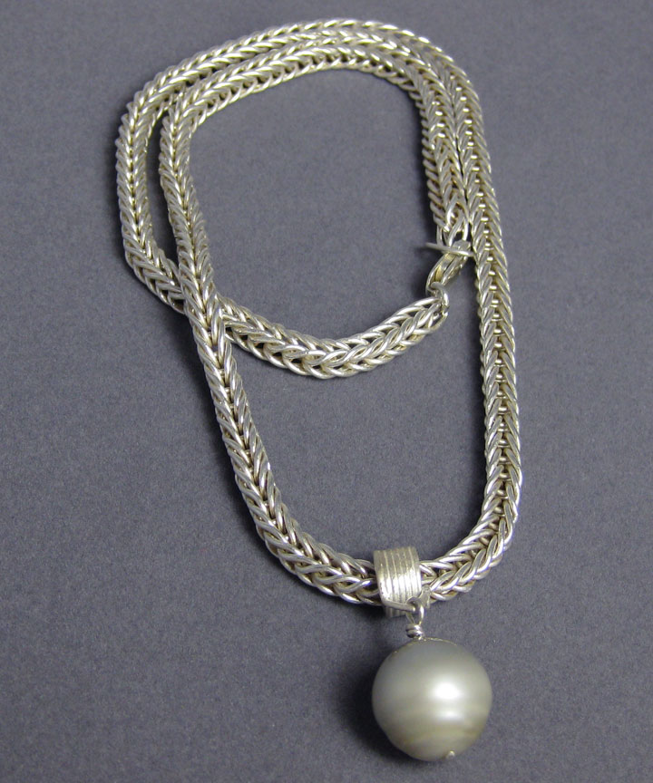 This heavy, handmade chain supports a soft gray tahitian pearl.